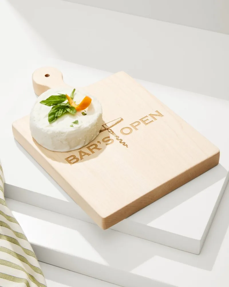 Crafted of premium maple wood, this gorgeous cutting board is just as perfect for preparing food as it is an impressive serving tray for cheese and charcuterie. Hand-finished with durable mineral oil that protects the wood while revealing its natural grain, this mark-resistant board is a truly luxurious addition to your bar and kitchenware.