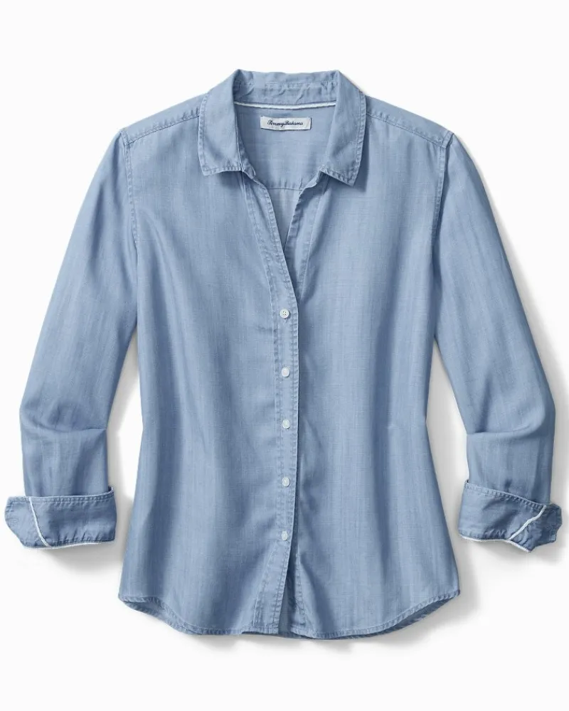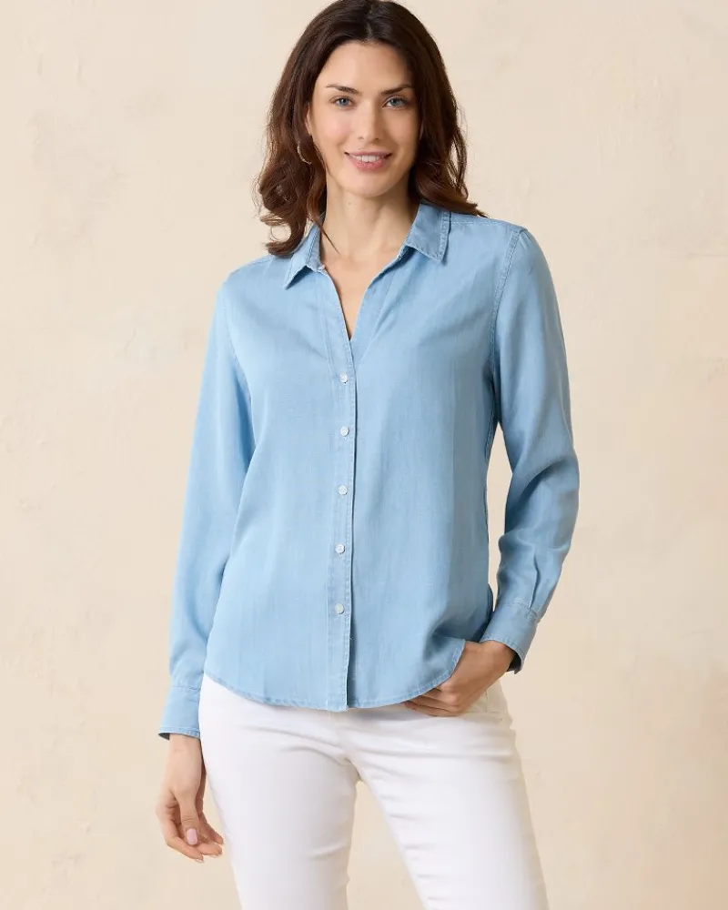 Tommy Bahama Chambray All Day Long-Sleeve Shirt Light Storm Wash Online