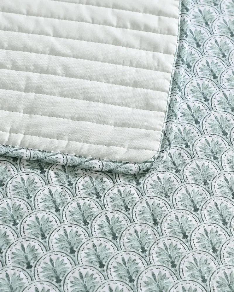 Blending coastal charm with timeless style, this reversible quilt set showcases a serene mix of ocean-inspired hues that will ease you into paradise-like relaxation every night.