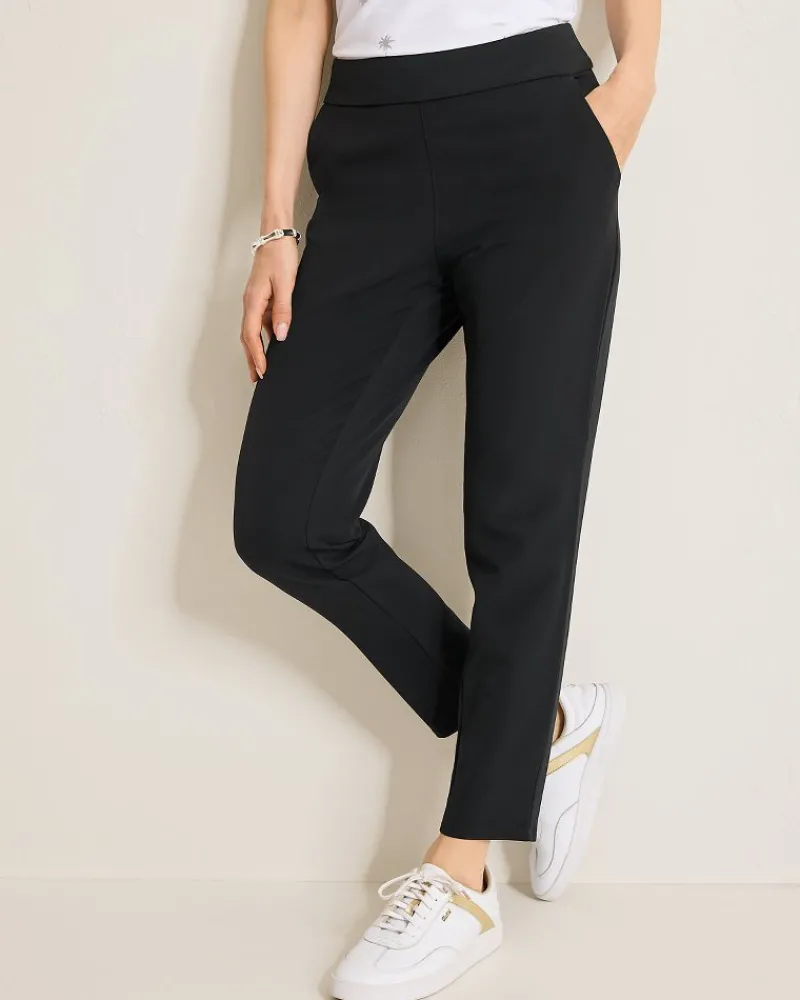 Contemporary appeal meets everyday versatility in these ultra-flattering pants, crafted from a stretchy blend with moisture-wicking features to help keep you cool and comfortable all day long.