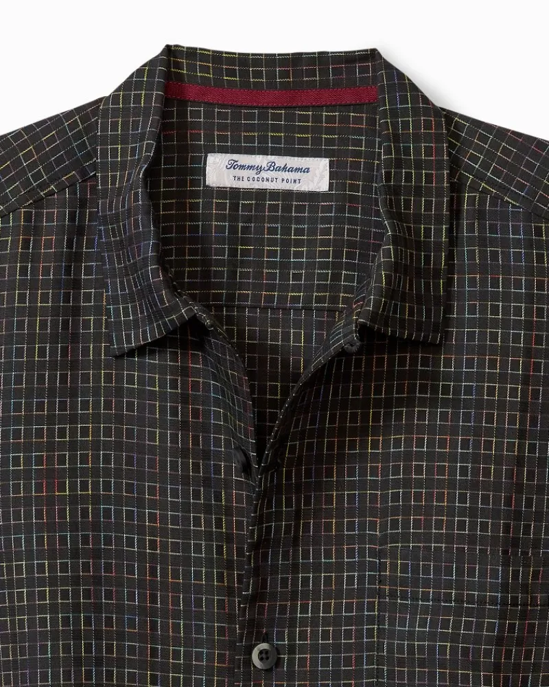Tommy Bahama Coconut Point Prismatic Check IslandZone® Camp Shirt Black Best