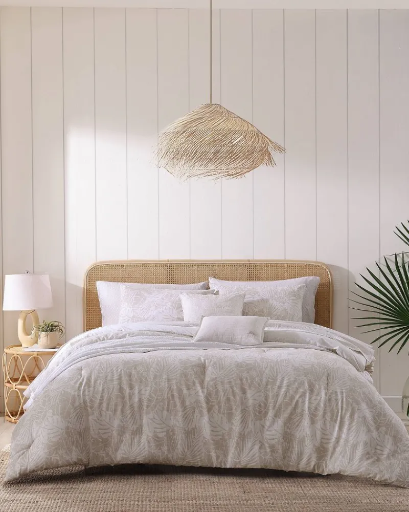 Bedtime has never felt—or looked—this peaceful. Drift away to the island state of mind with this comforter set featuring a subtle take on flowers from paradise.