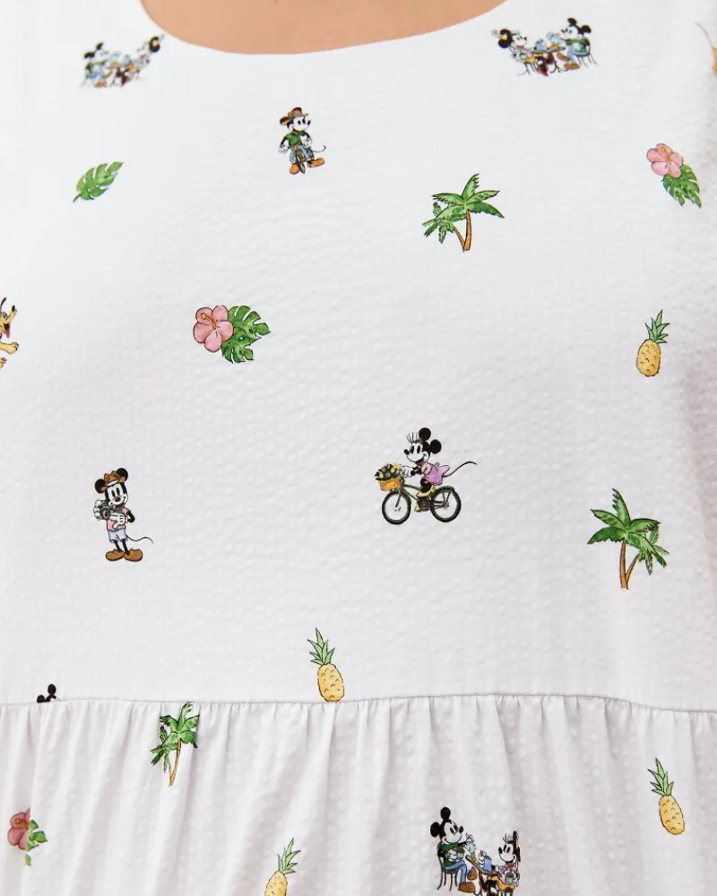Let playfulness inspire your travel wardrobe when you style this easygoing, tiered dress for your next getaway. Decorated with a Disney-inspired print designed for our limited-edition collection, this sleeveless style is perfect for casual urban outings and beachside strolls alike.