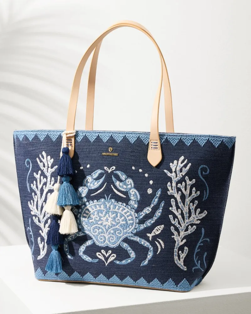 Tommy Bahama Embroidered Fiesta Crab Tote Blue Hot