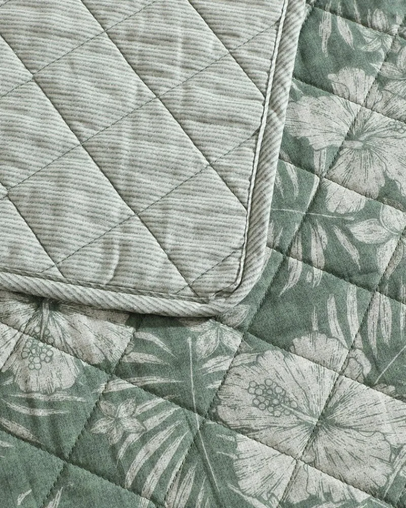 Add a breathable, fresh layer to your bedding ensemble with this sophisticated and island-inspired reversible quilt set. Featuring a moody botanical print with a versatile muted hue on its reverse side, this bedding effortlessly elevates your space, while embracing the spirit of paradise.