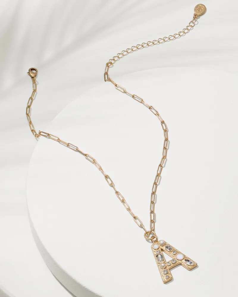This classic necklace design brings a touch of glam to a timeless trend, featuring a chic initial charm embellished with sparkle and subtle shell accents.
