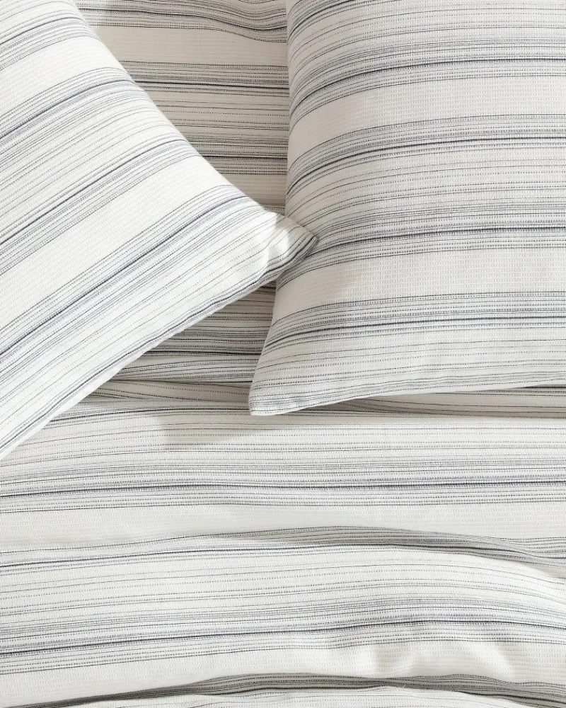 Ease into relaxation with the comfort of this micro waffle bedding set, featuring a tonal grey striped design that effortlessly complements your décor. The midweight comforter also comes with two matching shams and a breakfast pillow cover to complete your dreamy ensemble.