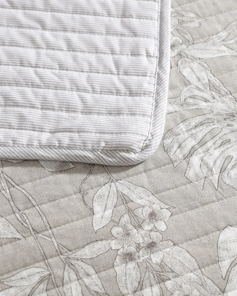 Drawing inspiration from the vibrant jungle, this reversible quilt set features a playful blend of birds and botanica against a neutral beige backdrop, creating a charming and versatile print that instantly elevates your space.