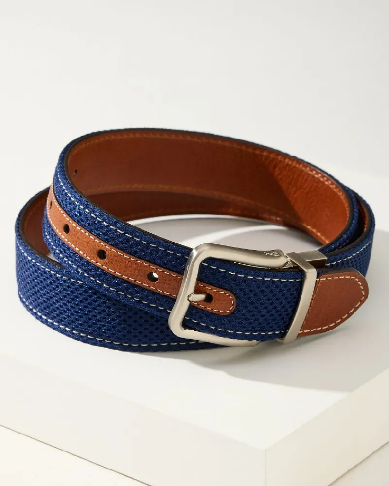 Tommy Bahama Leather Mesh Reversible Performance Belt Navy/Tan Discount