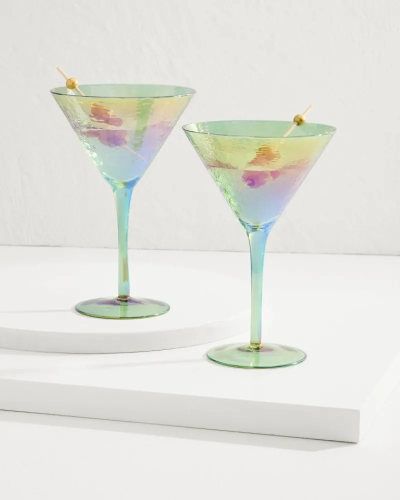 A unique hammered texture with a mesmerizing, colorful finish elevates this pair of stylish martini glasses, a perfect gift for the at-home entertainer with an elegant aesthetic.