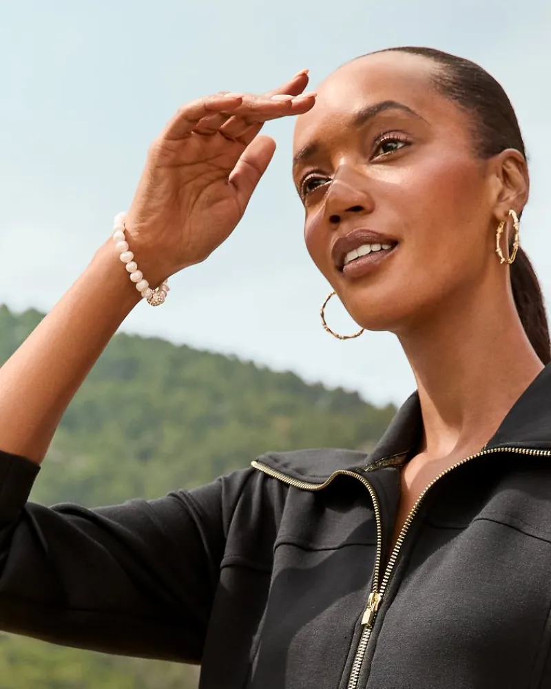 This classic pearl stretch bracelet shines a little brighter with the accent of a sparkle-embellished bead, making it the perfect accessory for when you want a subtle dose of glam.