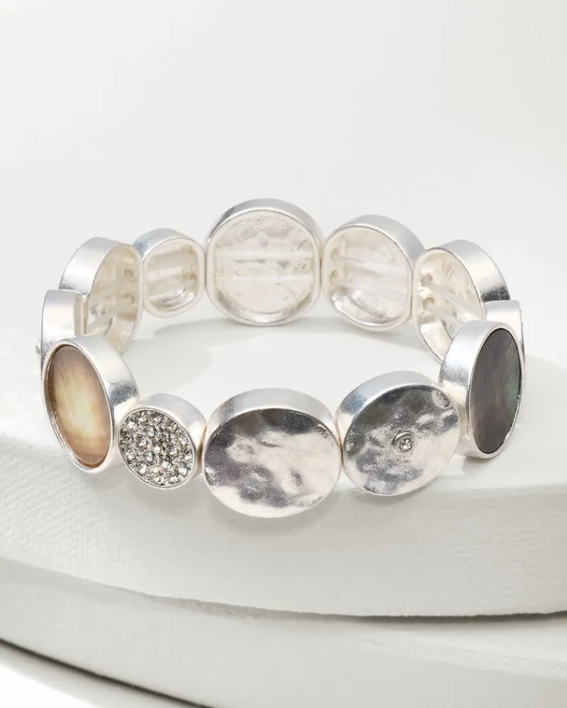 Hints of sparkle and shell details bring the island spirit to this chic stretch bracelet with a sleek, modern design.