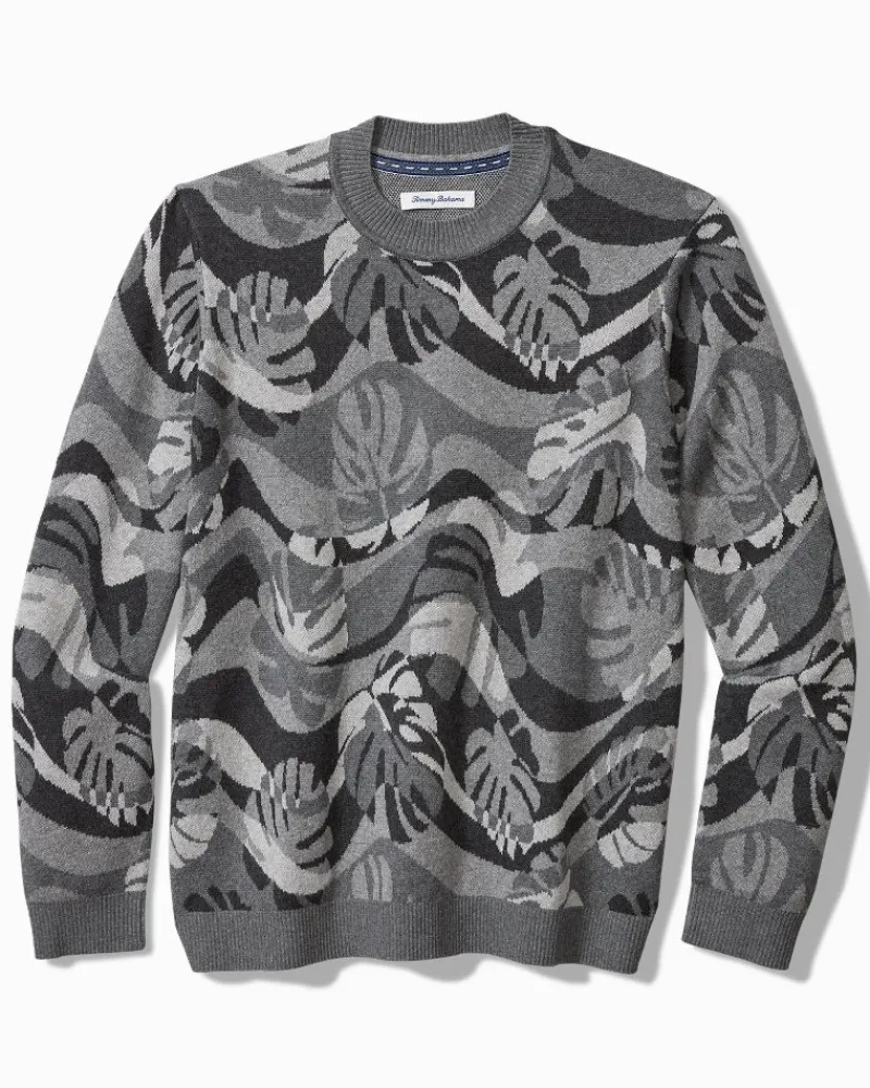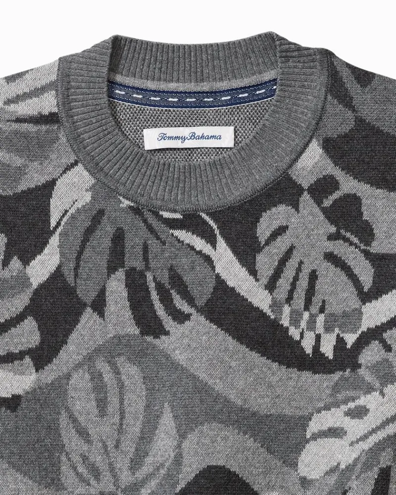 Tommy Bahama Monstera Camouflage Crew Sweater Heather Grey Outlet