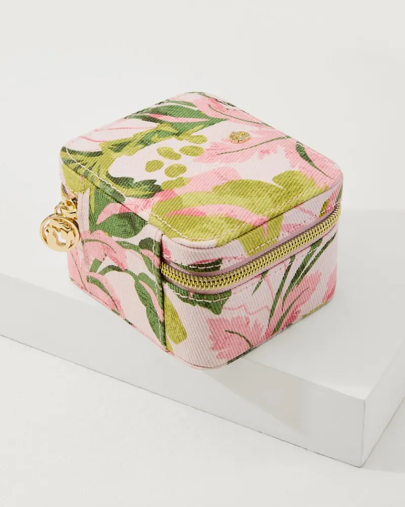 Look no further for a savvy solution to organizing your accessories. Complete with multi-pocketed storage to help you separate rings, necklaces, bracelets, and earrings, this chic tropical print pouch keeps everything secure and tidy, so your vacation routine doesn’t miss a beat.