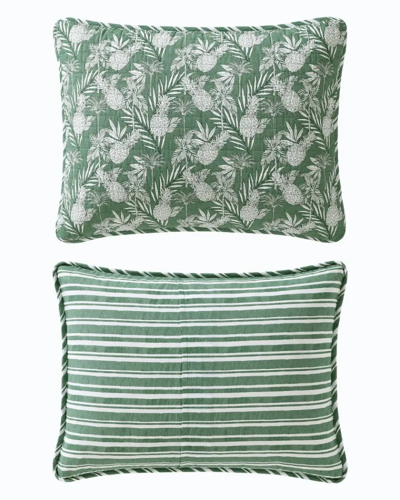 Add a breathable, fresh layer to your bedding ensemble with a reversible island-inspired quilt set that transforms your space into a serene, tropical oasis.