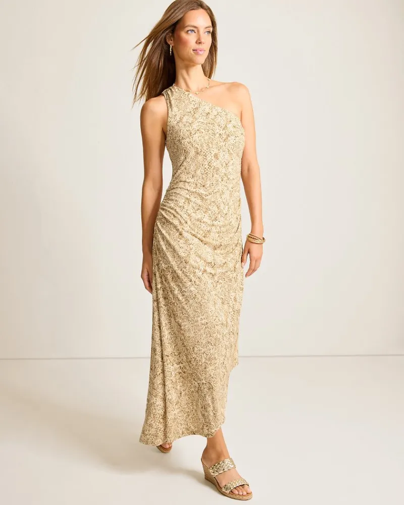 Tommy Bahama Playa Python Maxi One-Shoulder Dress Travertine Best