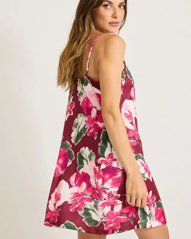 Slip into sweet dreams in this charming satin chemise, designed with adjustable straps for an easy, effortless fit from sunset to sunrise.