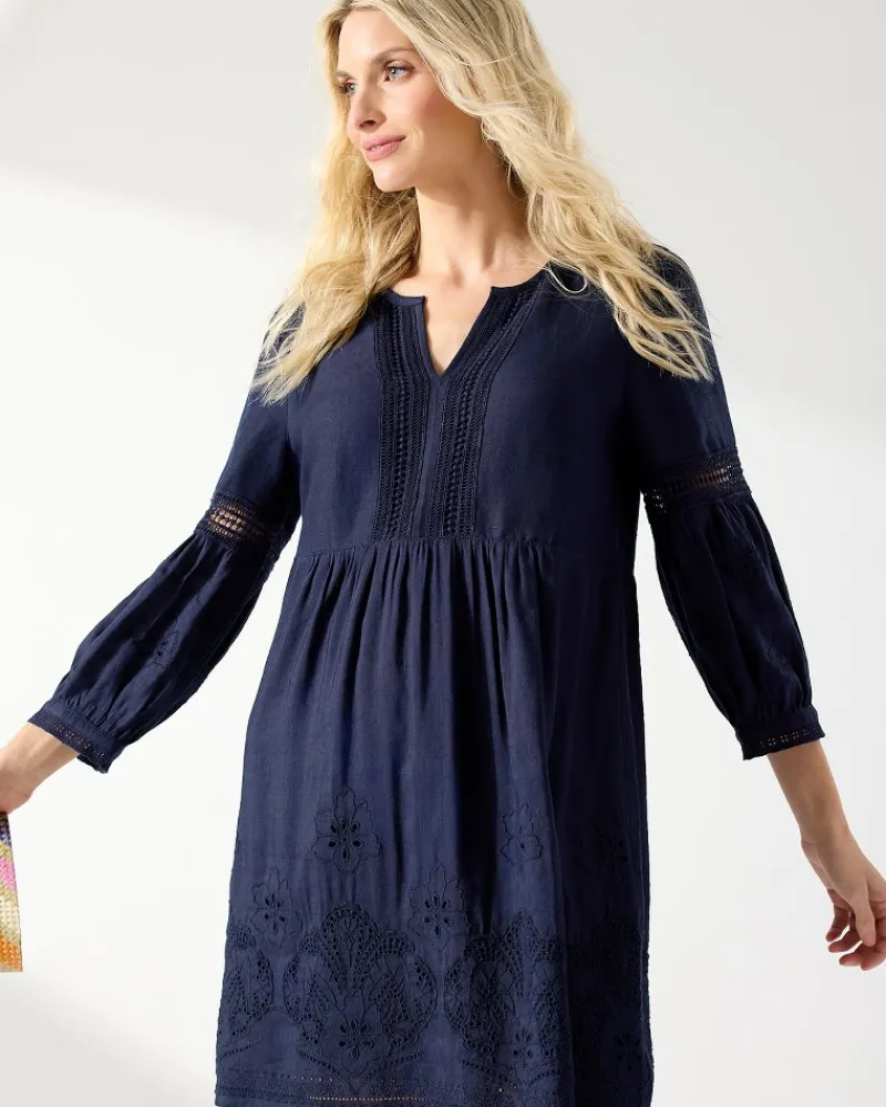 Tommy Bahama St. Lucia Linen-Blend Coverup Dress Mare Navy