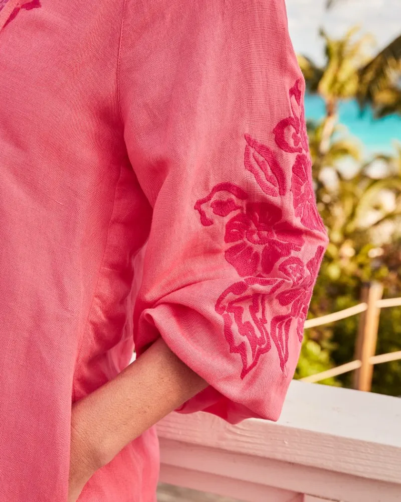 Tommy Bahama St. Lucia Linen-Blend Embroidered Coverup Dress Coral Coast Best