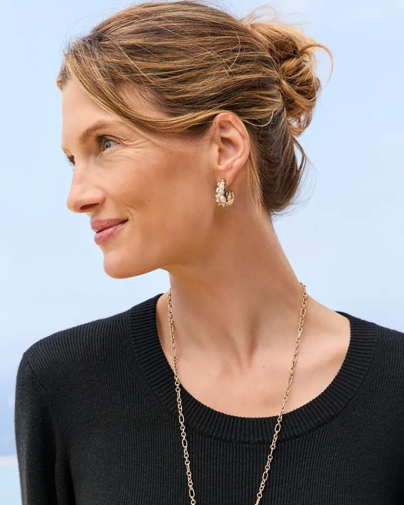 Tommy Bahama Tidal Treasure Mother of Pearl and Stone Chunky Hoops Gold Sale