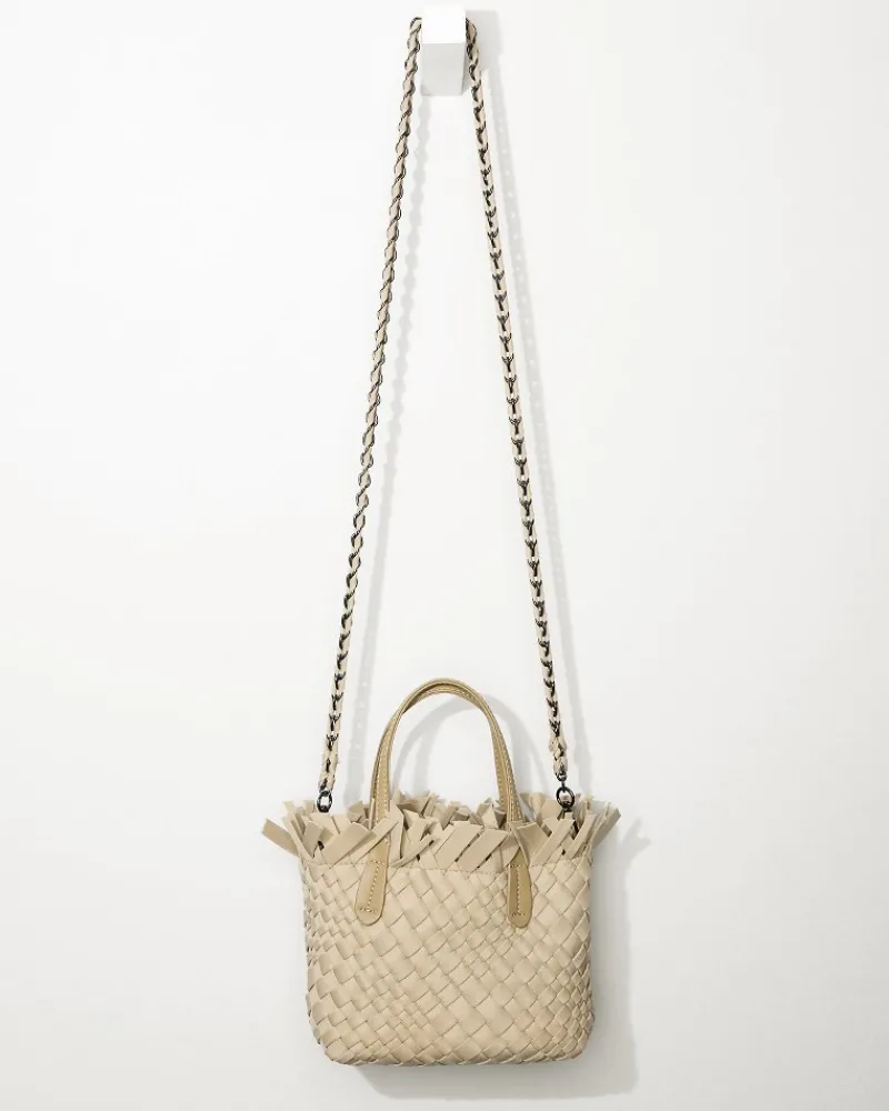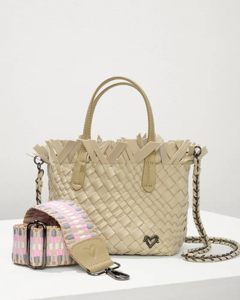 Offered in a variety of versatile colors, this mini woven tote is the compact carry-all everyone needs. Complete with a double top handle so you can style it as a clutch, as well as a crossbody with two removable straps, this fringe-topped handbag helps keep all your essentials secure.