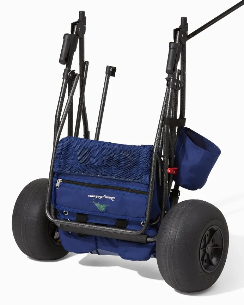 Meet the ultimate beach day helper: the Tommy Bahama Wonder Wheeler®. This beach cart has a capacity of 100 pounds with the ability to hold a 48-quart cooler and four beach chairs. Boasting a removable tote, insulated drink holders, and an umbrella holder, the Wonder Wheeler® will make your next trip to the beach your easiest, most convenient excursion yet.