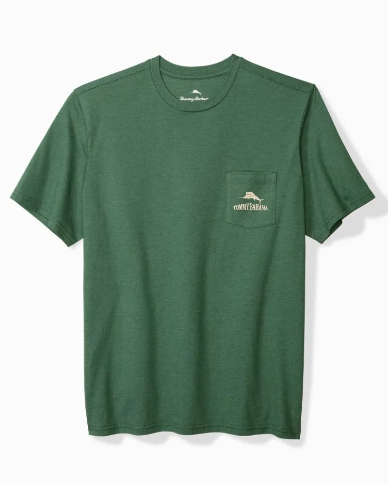 Tommy Bahama Between the Ryes Graphic Pocket T-Shirt Green Meadow Heather Clearance