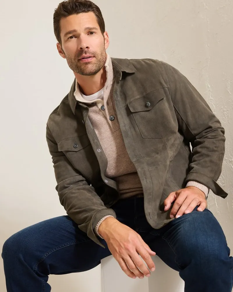 Tommy Bahama Boulder Ridge Suede Shirt Jacket Fog Grey Discount