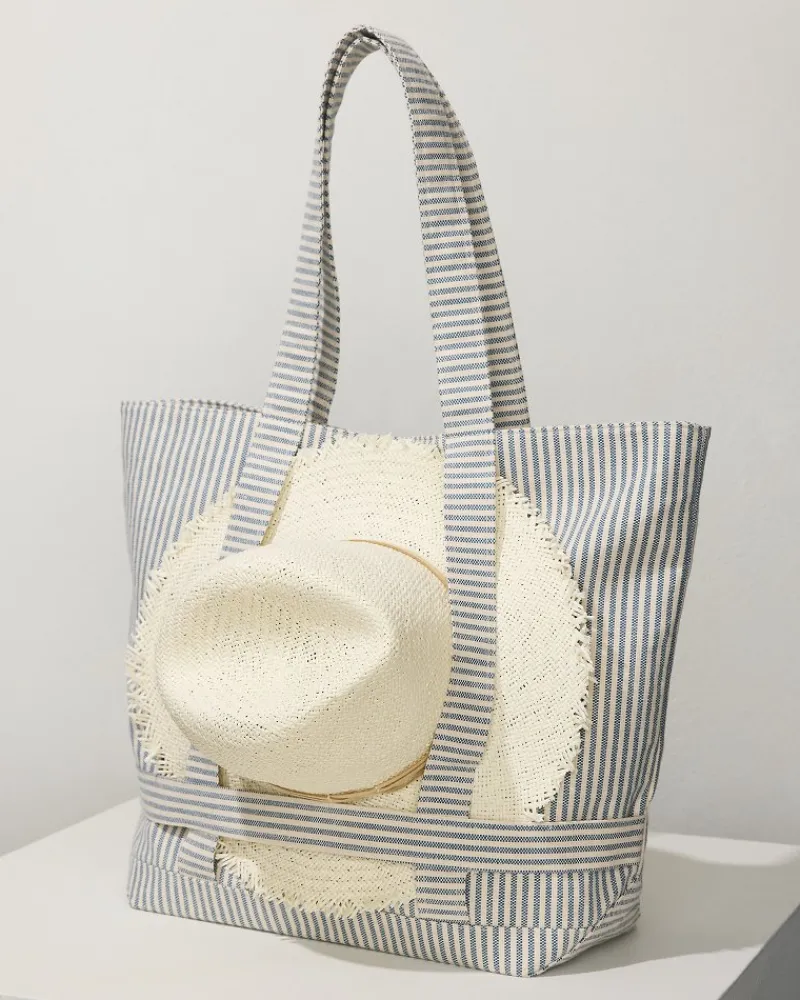 Tommy Bahama Canvas Traveler Tote Navy Stripe Best