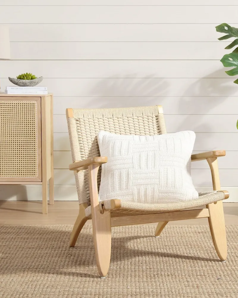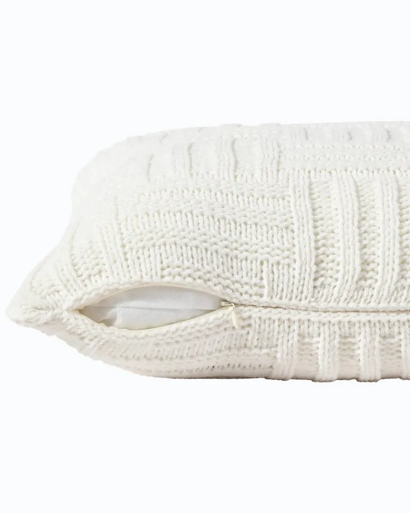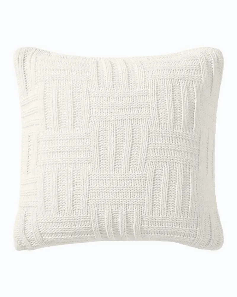 Elevate your sanctuary and make it extra cozy and comfy with this soft knit pillow, featuring a unique woven design.
