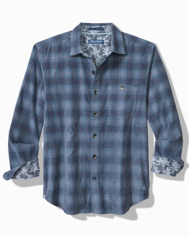 Tommy Bahama Coastline Cord Stretch Ombré Check Shirt Dockside Blue New
