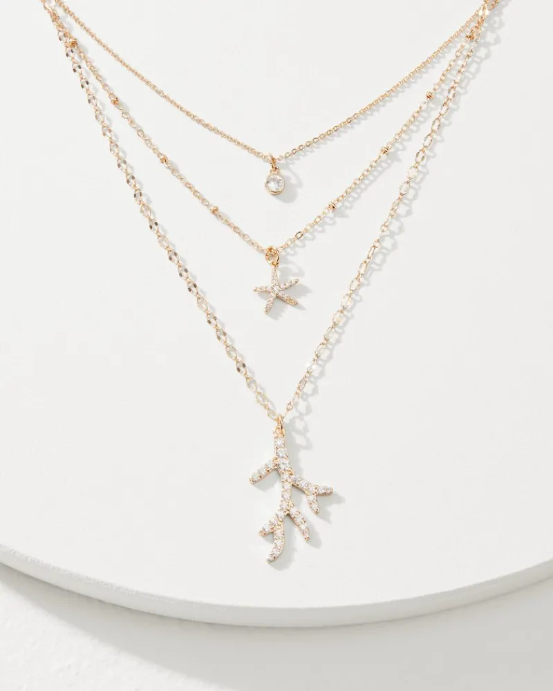 Embellished sea life-inspired charms help you lean into coastal glamor with this dainty layered necklace that makes your accessorizing appear totally effortless.