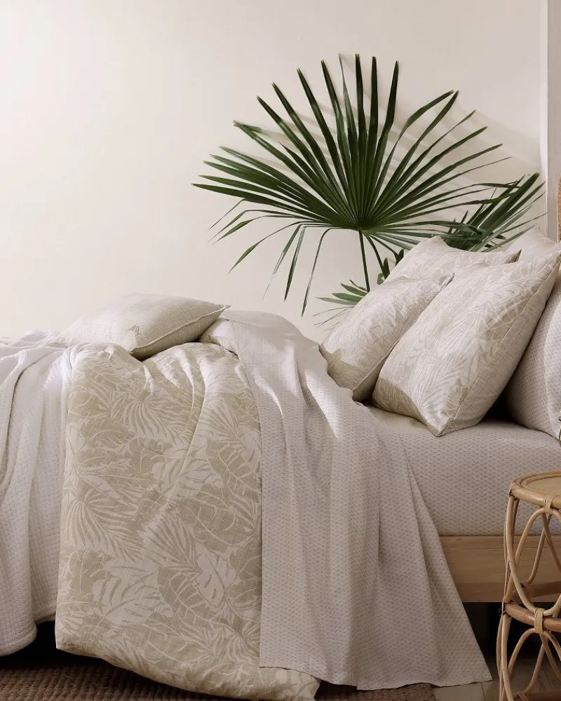 Bedtime has never felt—or looked—this peaceful. Drift away to the island state of mind with this comforter set featuring a subtle take on flowers from paradise.