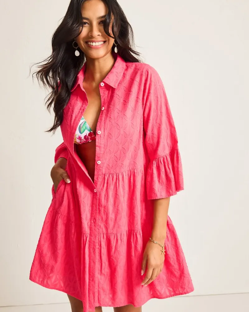 Tommy Bahama Cotton Clip Jacquard Coverup Shirt Dress Coral Coast Sale