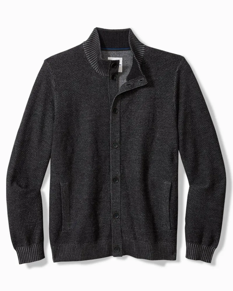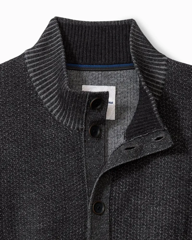 Tommy Bahama Crescent Shore IslandZone® Button-Mock Cardigan Charcoal Clearance