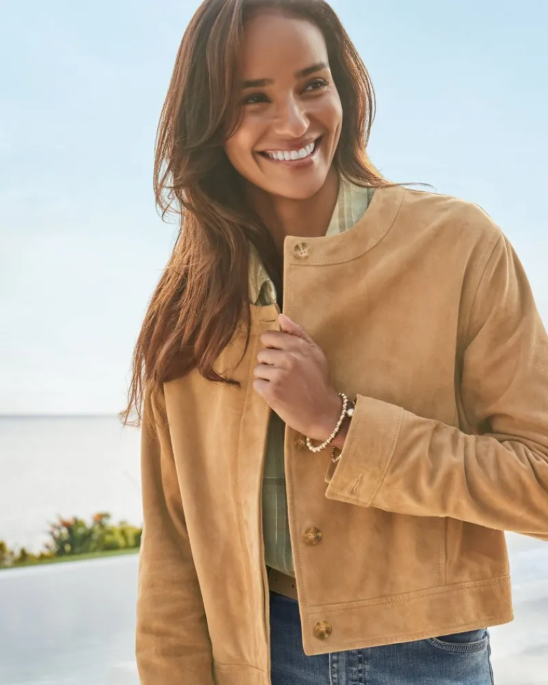 Be the first to review “Tommy Bahama Cropped Suede Jacket Cafe Au Lait Clearance” Cancel reply