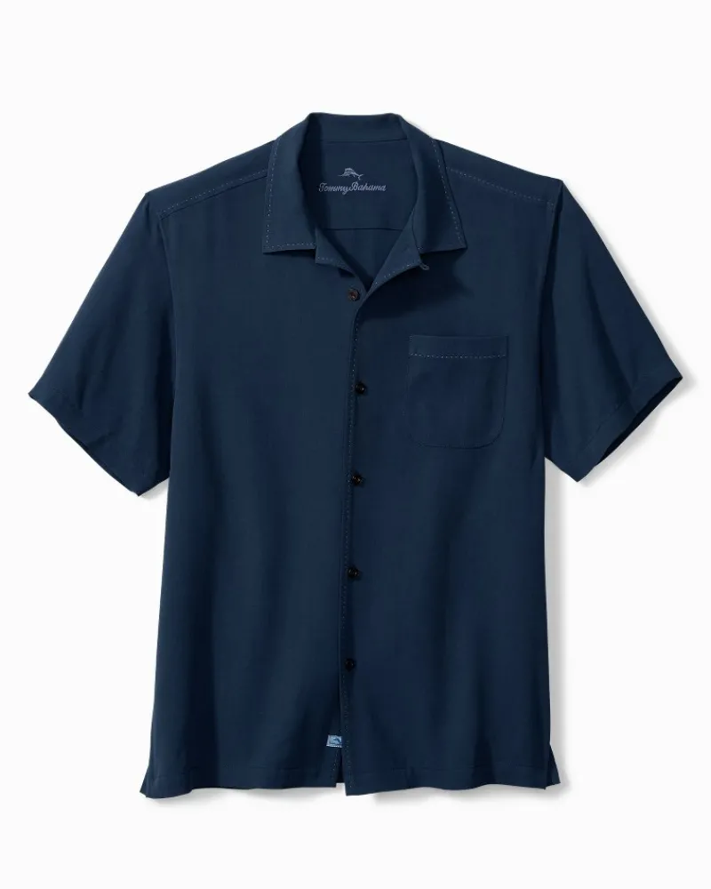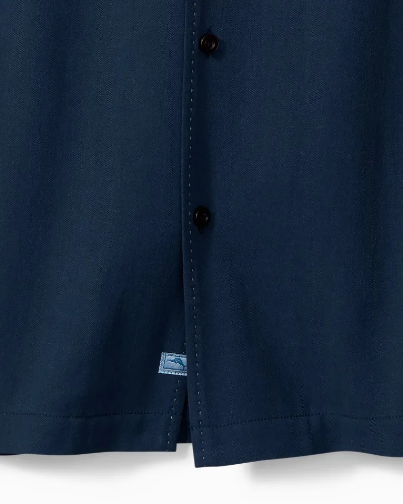 Tommy Bahama Hawaiian Herringbone Silk Camp Shirt Navy Hot