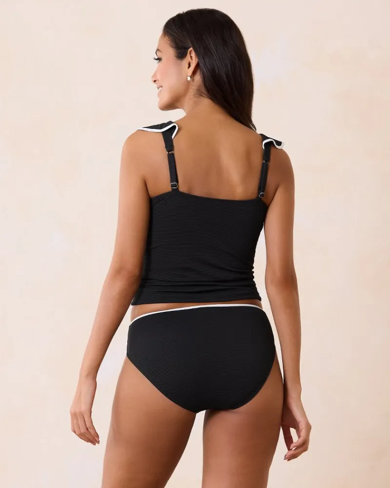 Tommy Bahama Island Cays Cabana Ruffle Tankini Top Black Hot