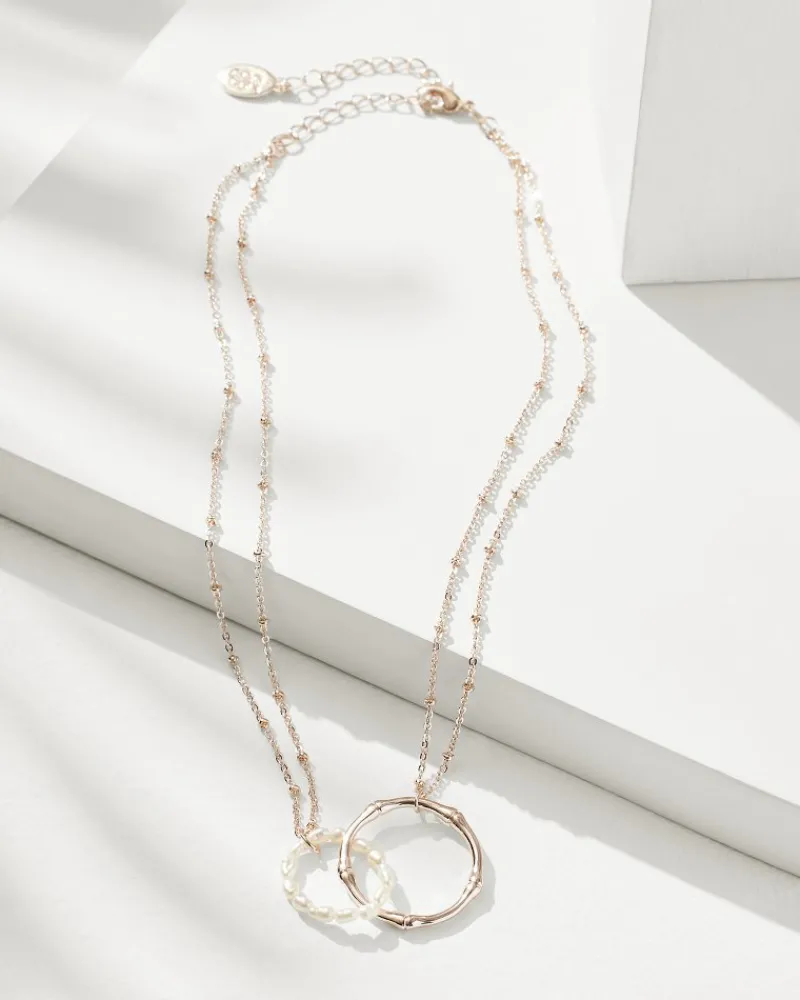 Add dimension, texture, and charm to your look with this unique double-loop necklace, featuring freshwater pearls and subtle notes of sparkle.