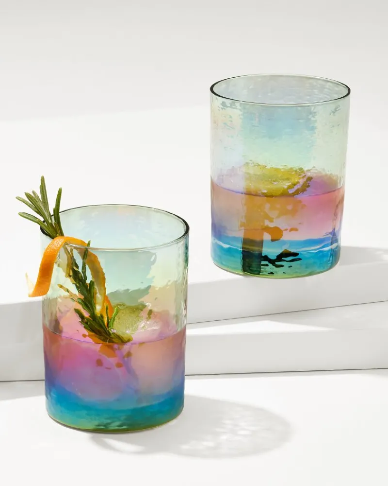 A unique hammered texture with a mesmerizing, colorful finish elevates this pair of traditional rocks glasses and adds even more elegance to cocktail hour. It also makes for the perfect gift for the at-home entertainer in your life—and it might help you guarantee your next invite!