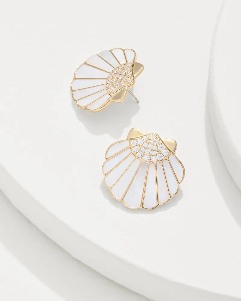 Channel island elegance with this standout pair of stud earrings, boasting an ultra-chic embellished shell design.