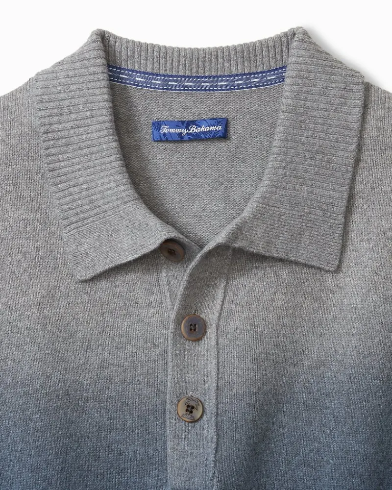 An of-the-moment gradient design and relaxed three-button collar strike the perfect balance between elevated appeal and laid-back comfort in this unique sweater style, crafted from a soft and lightweight organic cotton blend.