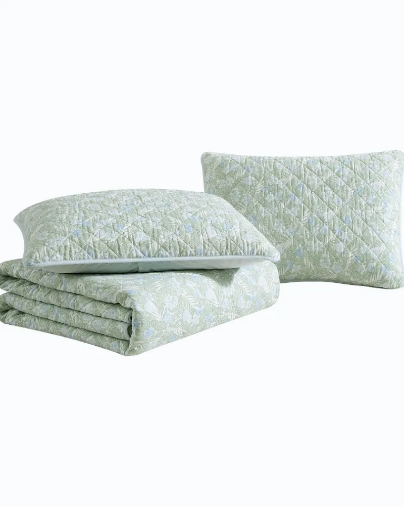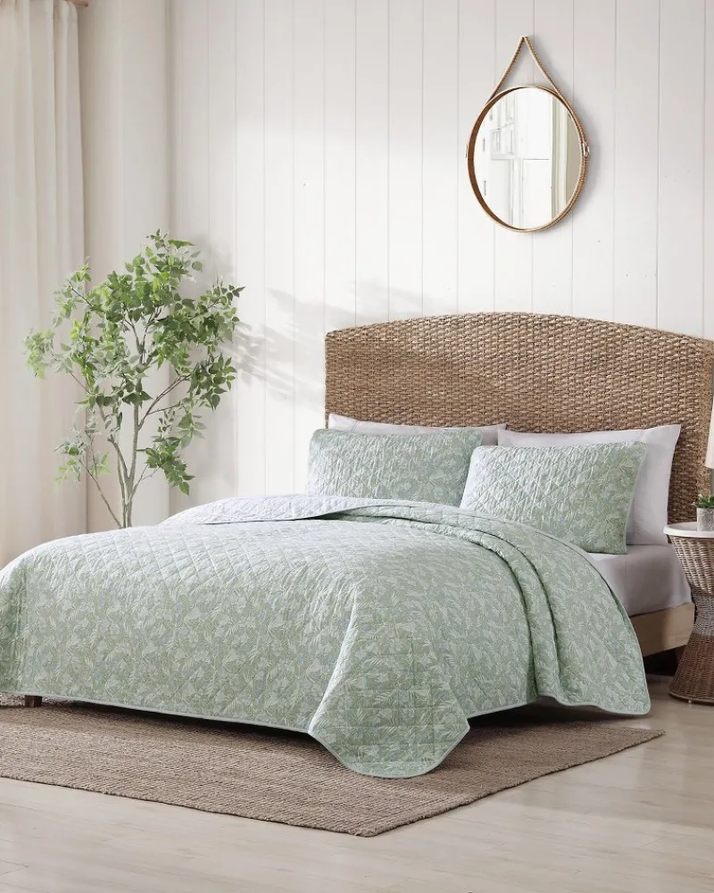 Add a breathable, fresh layer to your bedding ensemble with a reversible island-inspired quilt set that transforms your space into a serene, tropical oasis.