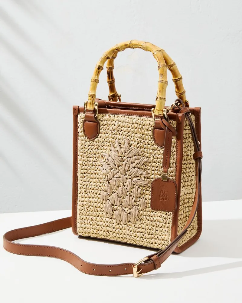 Tommy Bahama Raffia & Leather Bamboo Mini Tote Tan