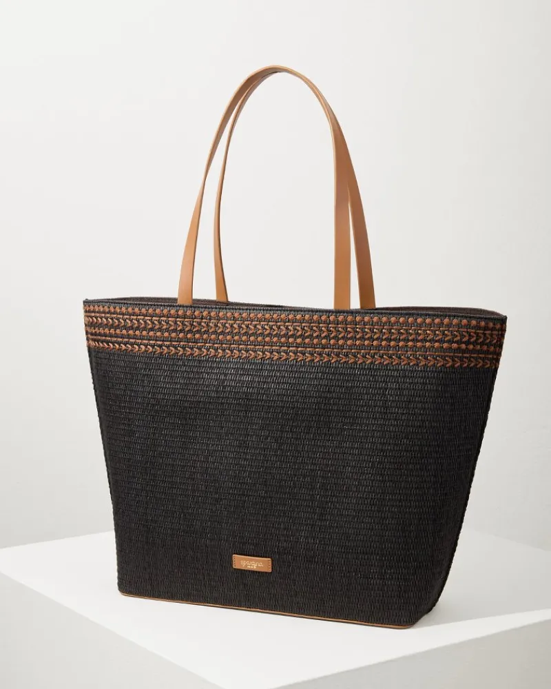 Tommy Bahama Raffia Palms Beach Tote Black Multi New