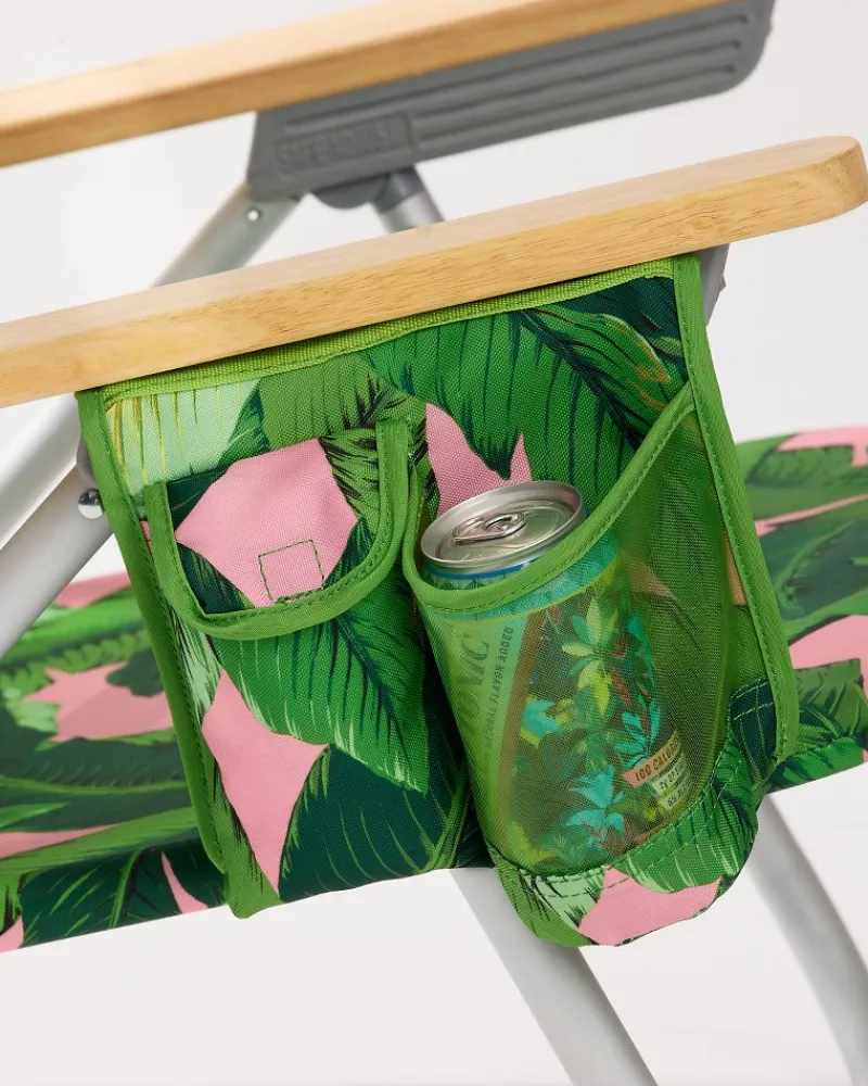 Kick back and relax—we’ve saved you the best seat on the beach. Designed so you can maximize your leisure, this tropical printed beach chair features a cooler pouch, drink holder, and pillow, so you can enjoy the view in unparalleled comfort.