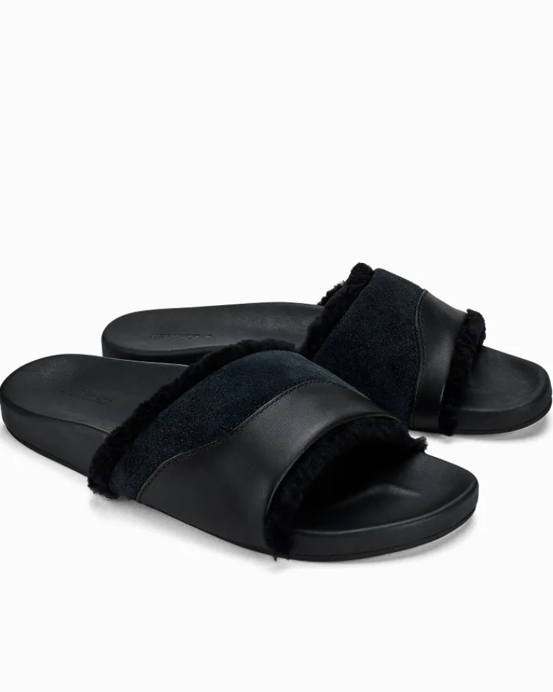 Always feel comfy and cozy in the Ho’ala slide slippers, crafted from a rich combination of leather and suede with sheepskin shealing lining.