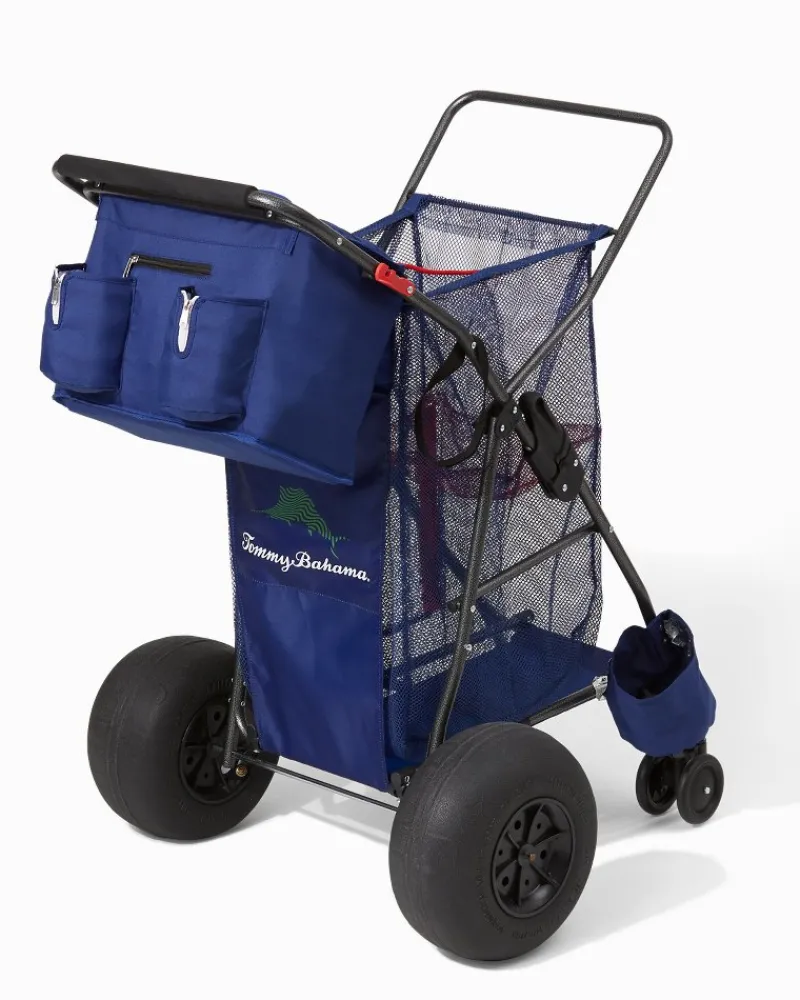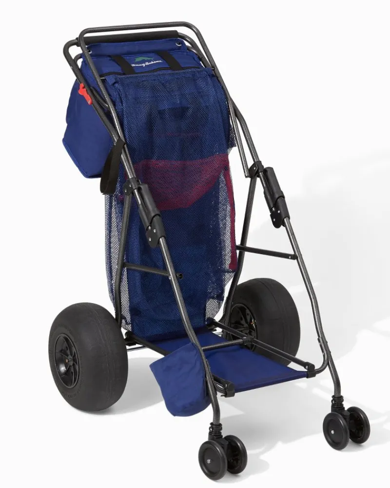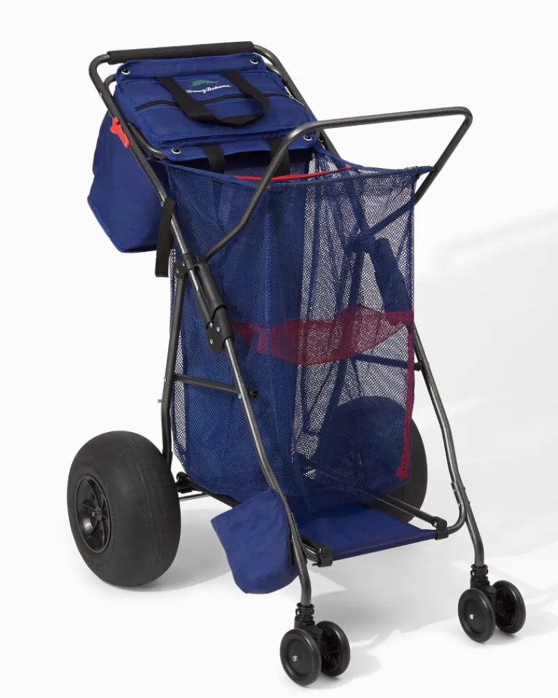 Meet the ultimate beach day helper: the Tommy Bahama Wonder Wheeler®. This beach cart has a capacity of 100 pounds with the ability to hold a 48-quart cooler and four beach chairs. Boasting a removable tote, insulated drink holders, and an umbrella holder, the Wonder Wheeler® will make your next trip to the beach your easiest, most convenient excursion yet.