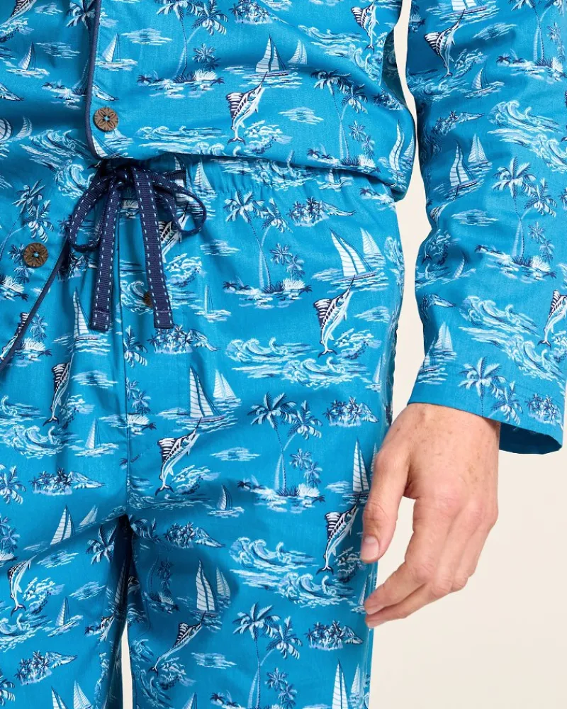 Tommy Bahama Woven Long Sleeve & Pants Pajama Set Slate Teal